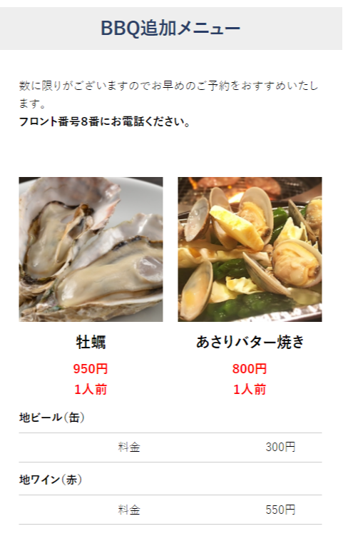 お客様にとっても、手軽に写真付きのBBQメニューや案内動画を見れるので、
